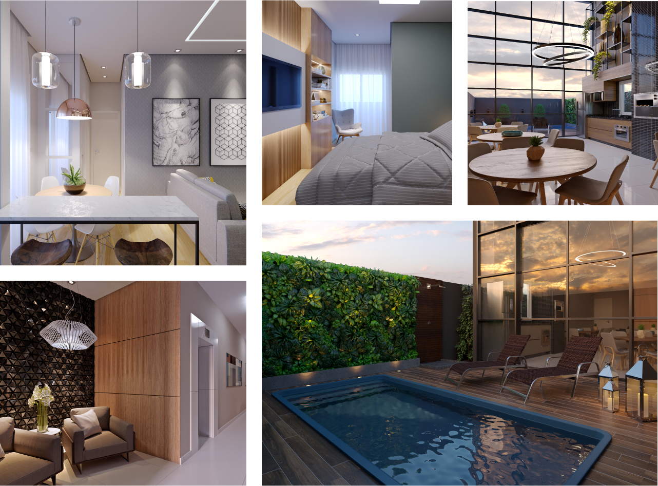 Com 4 diferentes layouts, a engenharia do Premier Residence permite a você escolher entre desenhos de plantas diferentes, de acordo com seu gosto pessoal ou necessidade.